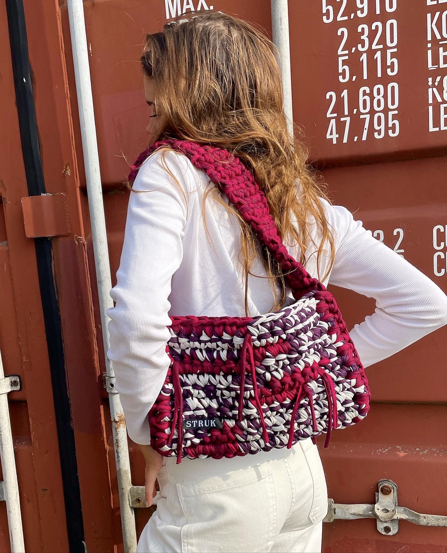 Exclusive designer bag from STRUK in Bordeaux, pink and grey.